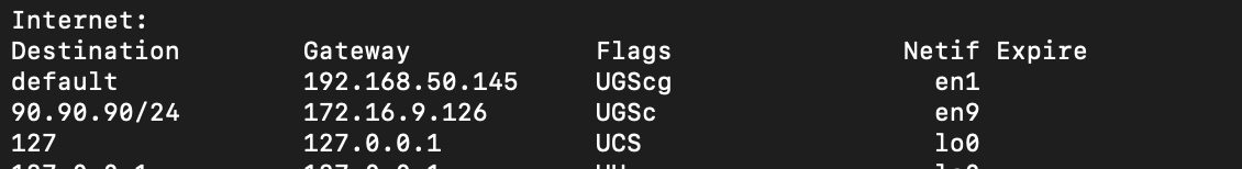 netstat -rn | grep -E '172\.16|90\.90\.90' | head -10